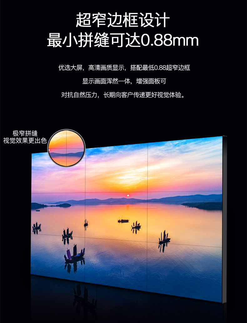 5、支持分辨率:液晶拼接的分辨率是它顯示效果非常重要的參數之一。分辨率的高低決定了顯示圖像的清晰度、畫面是否細膩等特點,一般它的分辨率為都非常高,如果分辨率過低則不要購買,否則顯示效果不理想。